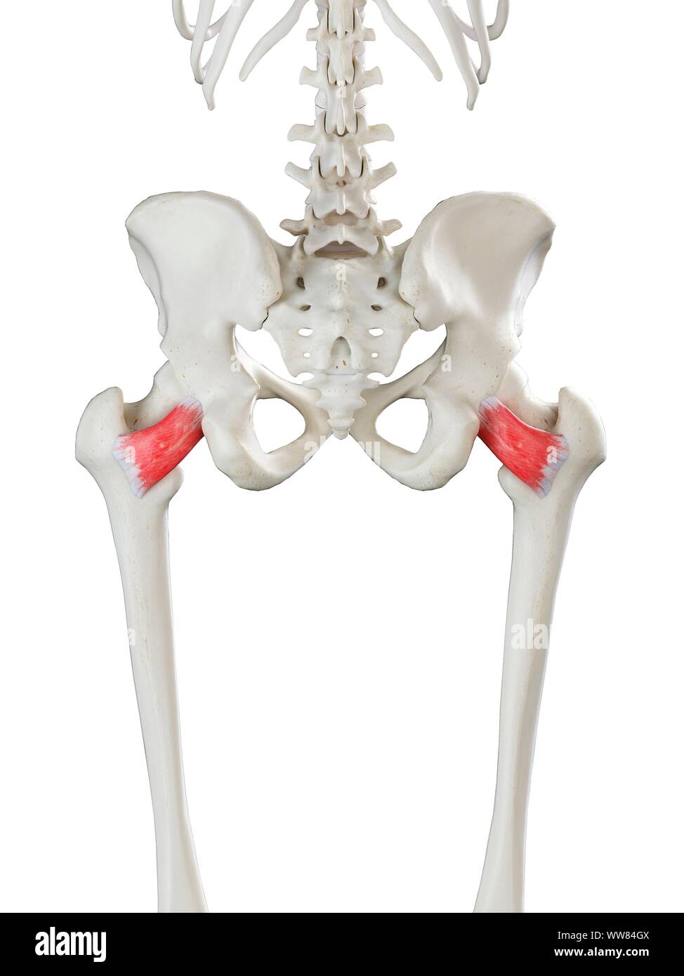 Su función es ayudar a la rotación lateral del fémur con la extensión de la cadera y a la abducción del fémur con la flexión de la cadera, así como estabilizar la cabeza femoral en el acetábulo.